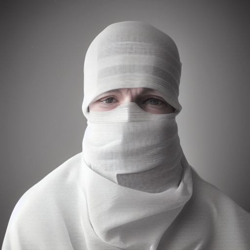The figure was wrapped in layers of clothing and scraps all over. Only his eyes and nose were visible. He would not stop talking.